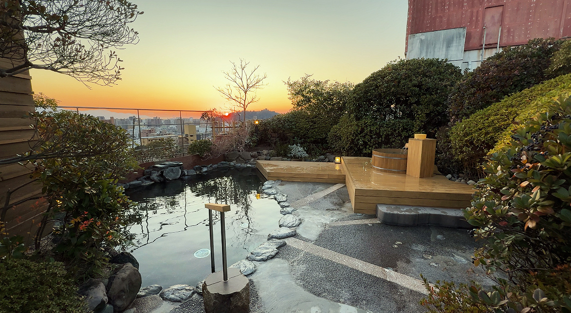 茶玻瑠の自慢のひとつは、道後で初めて造られた屋上露天風呂です。
