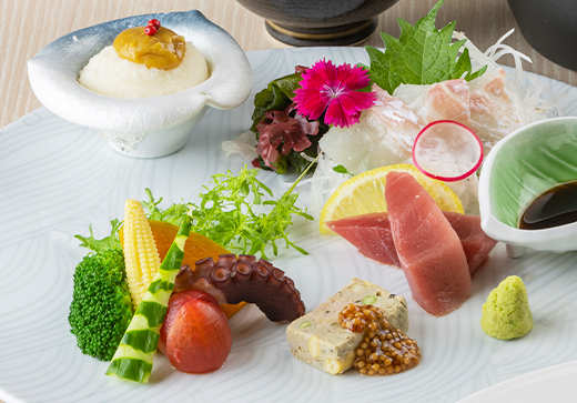 四季折々の新鮮な素材を活かし、見た目にも味わいにもこだわった料理の数々をお楽しみください。