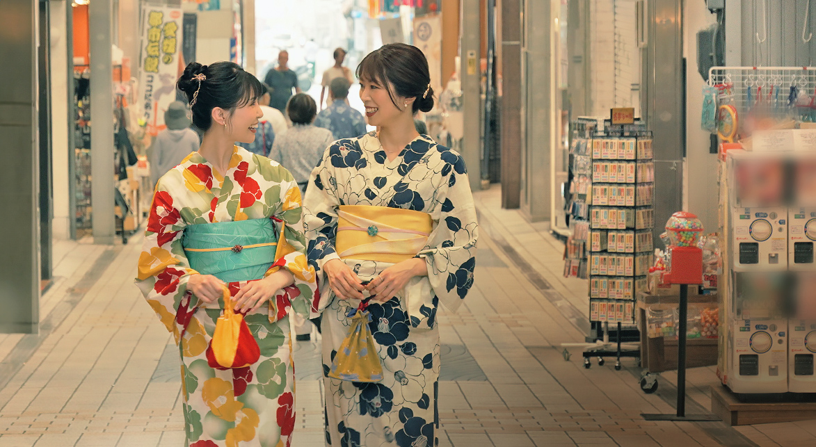茶玻瑠から歩いてすぐの道後商店街は、浴衣姿の観光客が行き交い、人力車が往来する、懐かしくも賑わいに満ちた通りです。