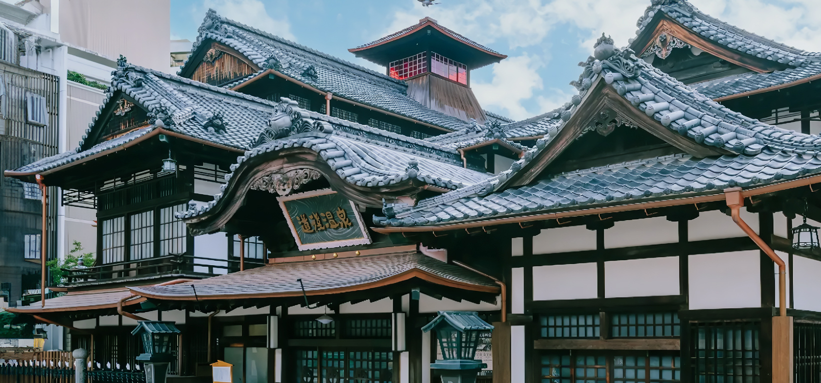 茶玻瑠や隣接する「CHAHARU離れ 道後夢蔵」にお越しいただくと、日本最古の温泉として名高い「道後温泉本館」がすぐ目の前にご覧いただけます。
