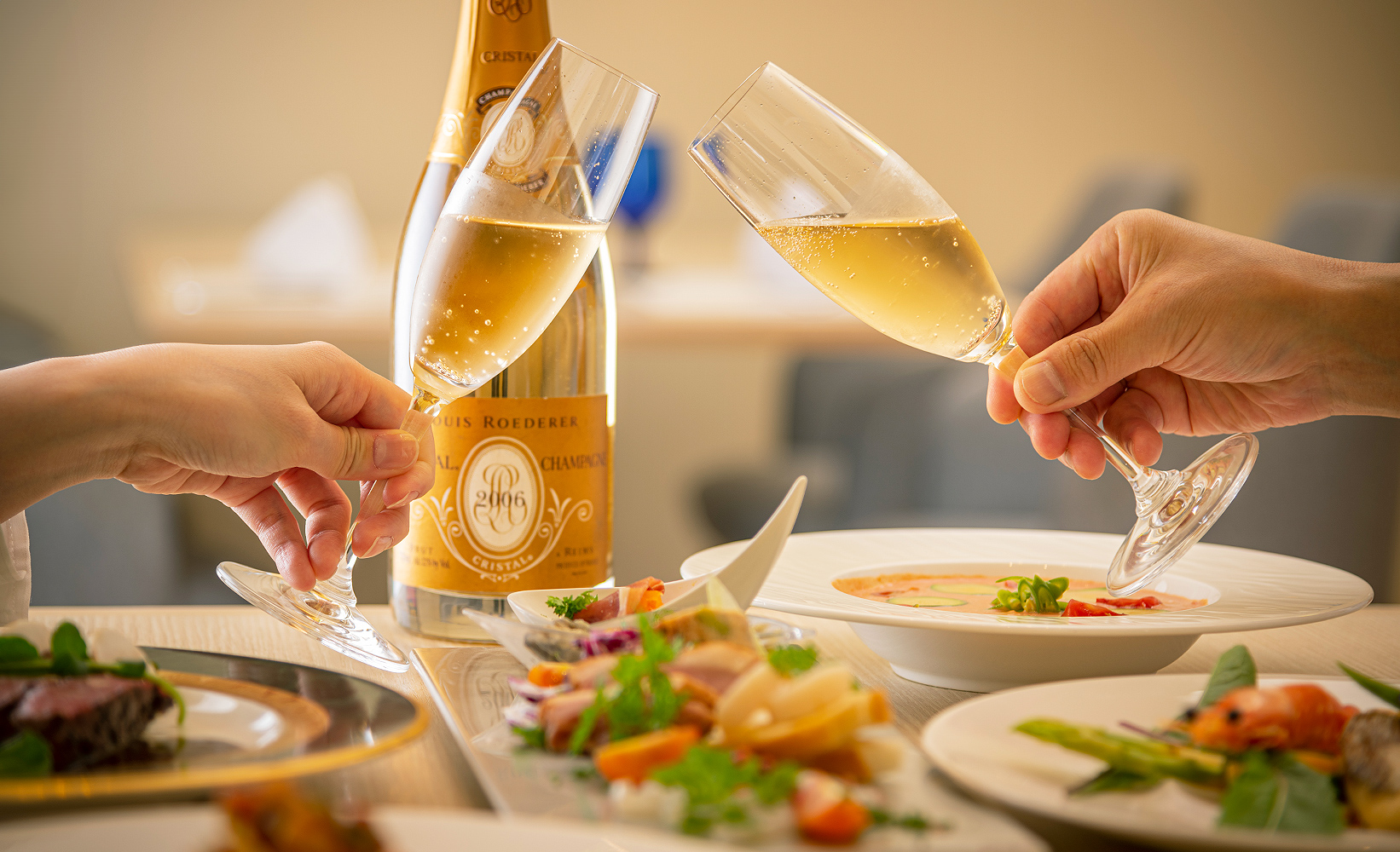 やわらかな光とアートに包まれたダイニングで、大切な人と過ごす穏やかな時間を心ゆくまでお楽しみください。