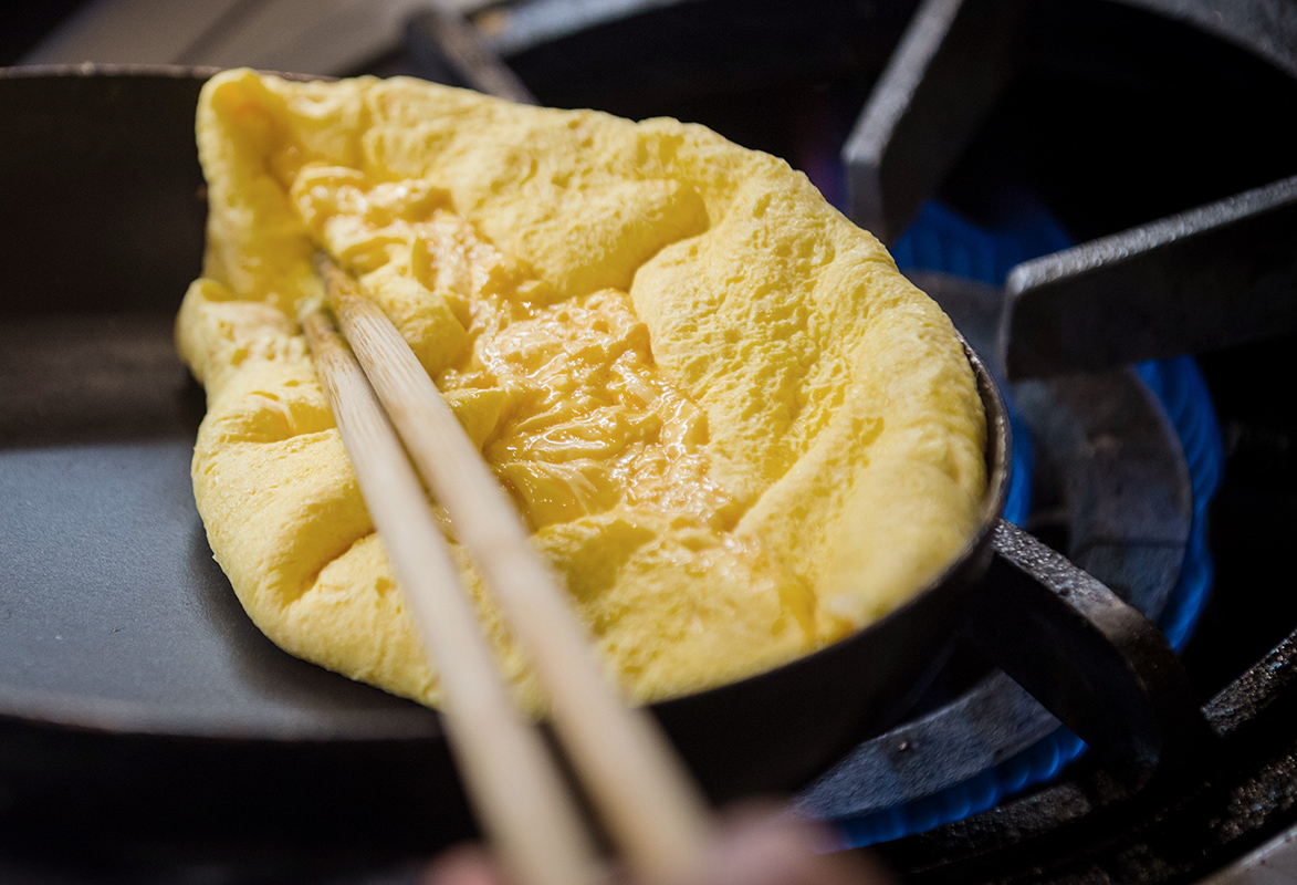 料理人がリクエストに応えながら目の前で調理するエッグステーション。