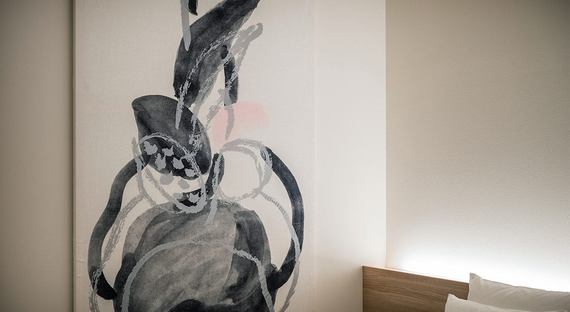 フィンランドの森や湿地、そして湖が生み出す豊かな自然。生まれ育った砥部町で親しんだ障子山や、田畑・蓮池などの数々の風景が源となったお部屋で、温かみと安らぎを感じながらお寛ぎください。