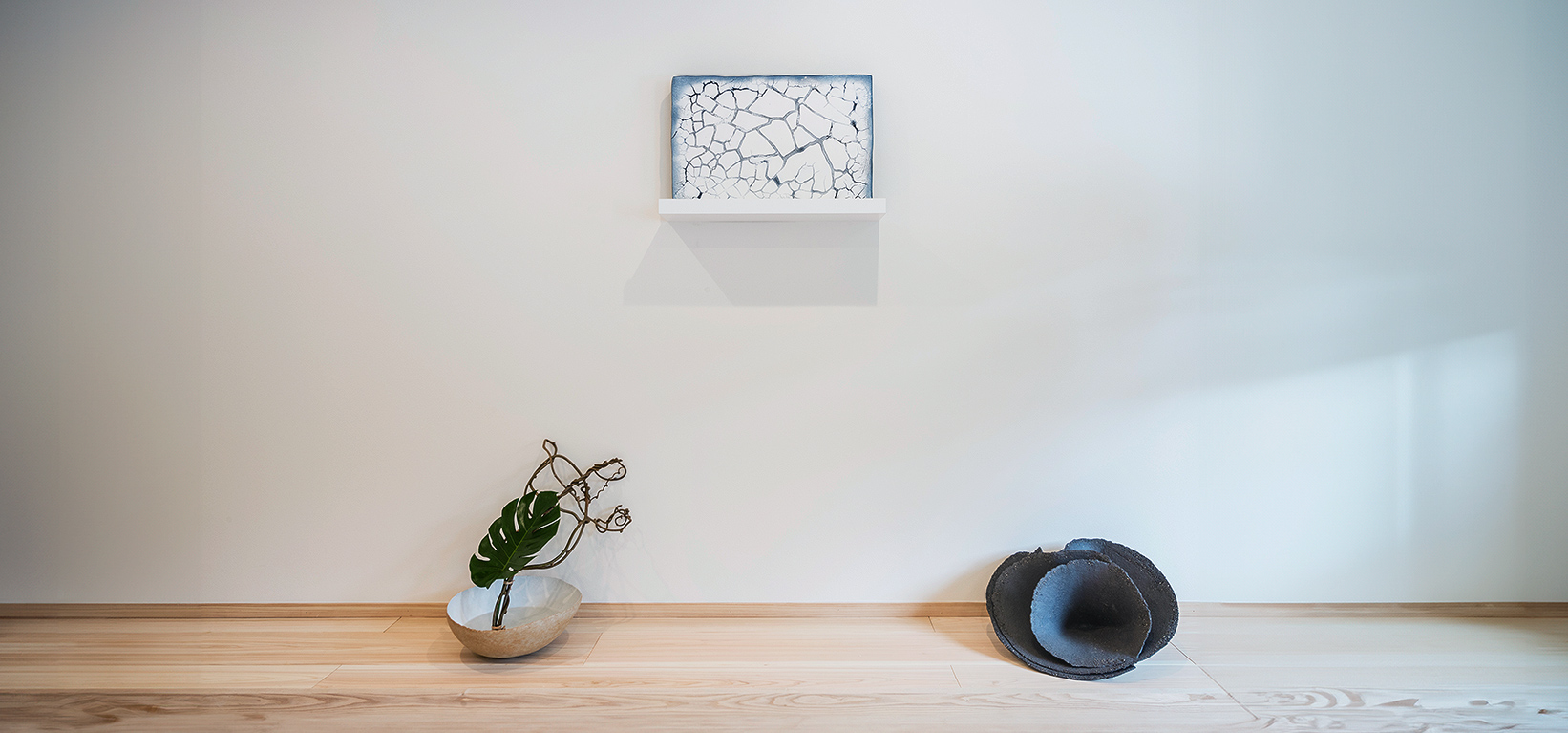 床の間に見立てたアート空間に石本藤雄氏による、