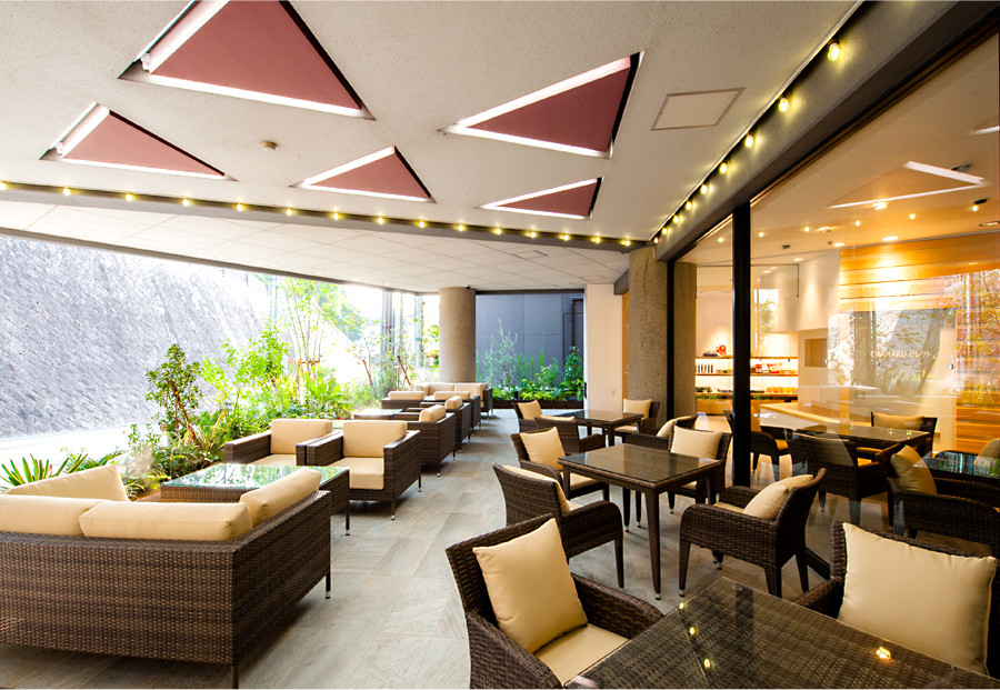 雑木林をイメージしたナチュラルガーデンを眺めながらティータイムを楽しむ優雅な時間をお過ごしください。